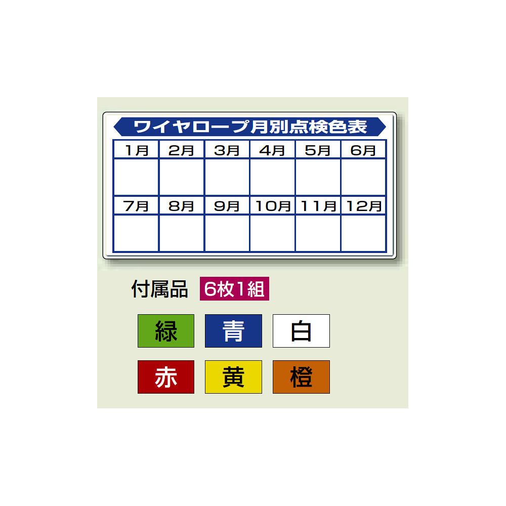 商品説明:玉掛関係標識 ワイヤーロープ月別点検色表 セット (804-91)