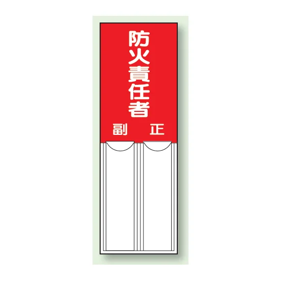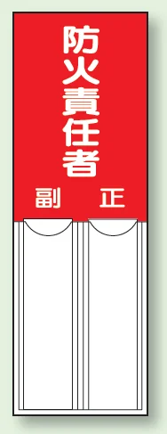防火責任者を、ひと目で分かりやすく掲示できる差込式指名標識。