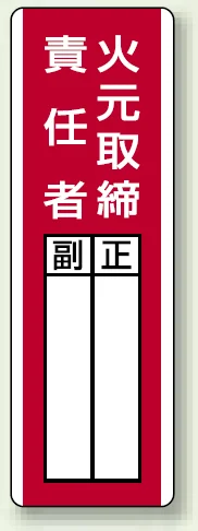 火元取締責任者を、ひと目で分かりやすく掲示できる記入式の指名標識。