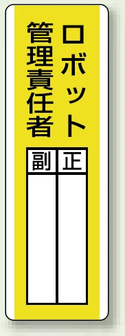 ロボット管理責任者を、ひと目で分かりやすく掲示できる記入式の指名標識。