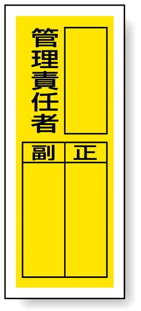 管理責任者を、ひと目で分かりやすく掲示できるステッカー製指名標識。