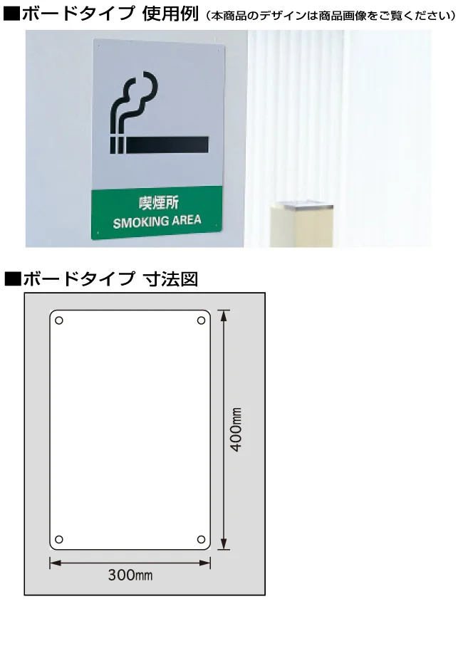 ■ボードタイプの使用例と寸法図(本商品のデザインは商品画像をご覧ください)