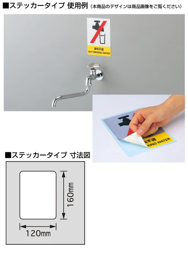 ■ステッカータイプの使用例と寸法図(本商品のデザインは商品画像をご覧ください)
