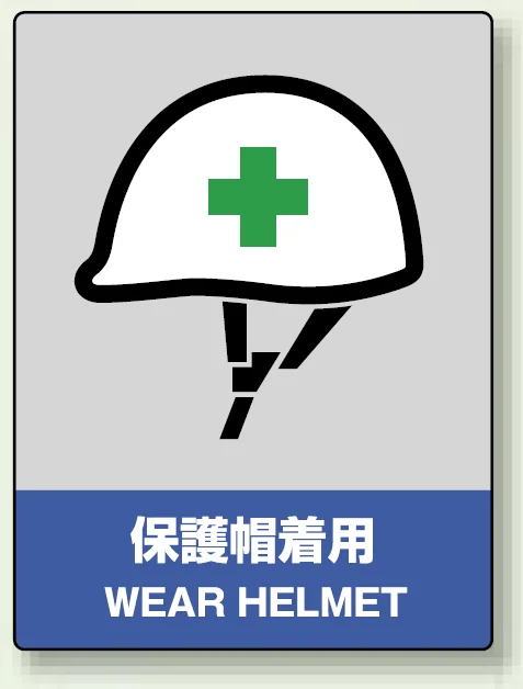保護帽の着用を、ひと目で分かりやすく伝える安全標識。