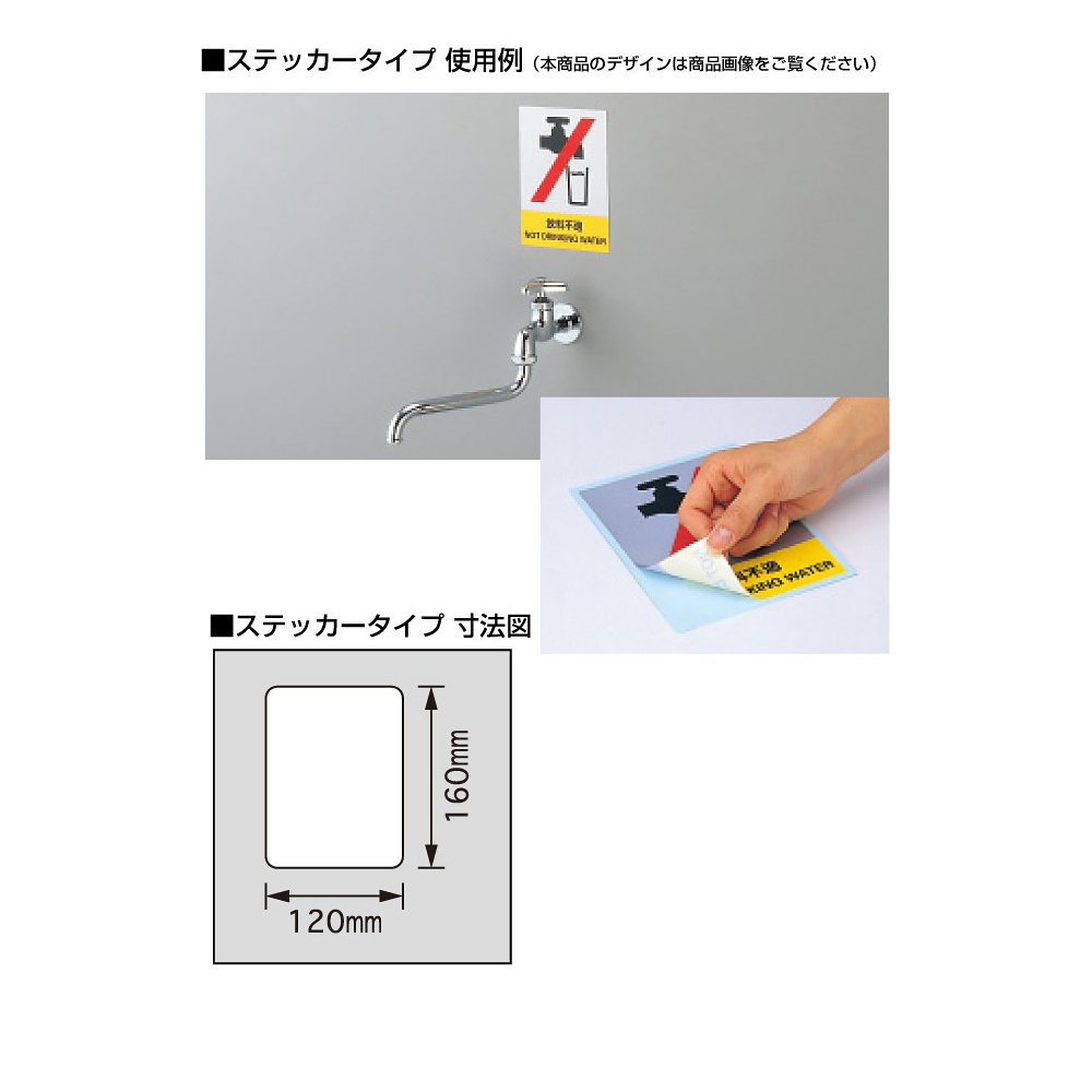 ■ステッカータイプの使用例と寸法図(本商品のデザインは商品画像をご覧ください)