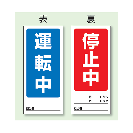 商品説明:(表) 運転中/ (裏) 停止中 両面ゴムマグネット標識 (805-75)