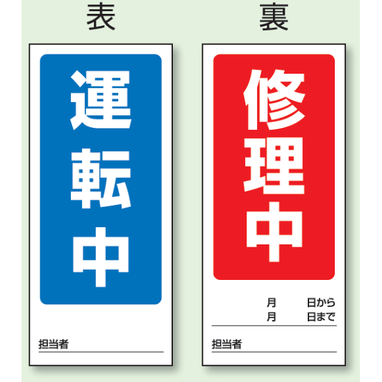 表示内容:(表) 修理中 操作禁止/ (裏) 点検中 操作禁止