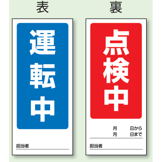 表示内容:(表) 運転中/ (裏) 点検中 スイッチいれるな