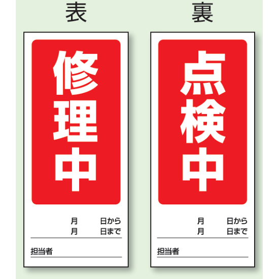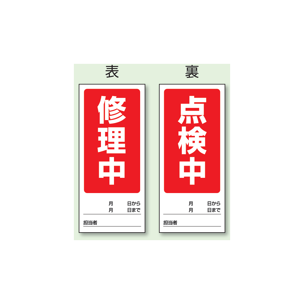 表示内容:(表) 修理中 操作禁止/ (裏) 点検中 操作禁止