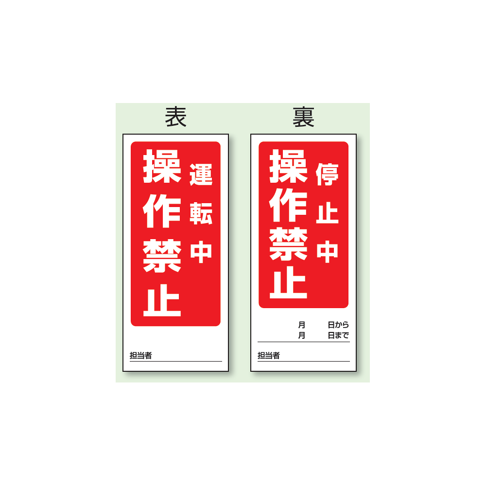 表示内容:(表) 修理中 操作禁止/ (裏) 点検中 操作禁止