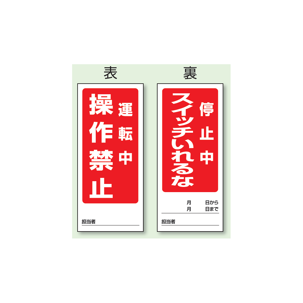 表示内容:(表) 修理中 操作禁止/ (裏) 点検中 操作禁止