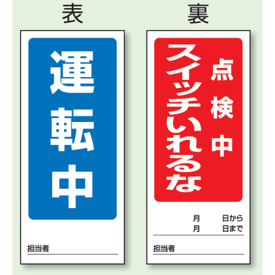 表示内容:(表) 運転中/ (裏) 点検中 スイッチいれるな