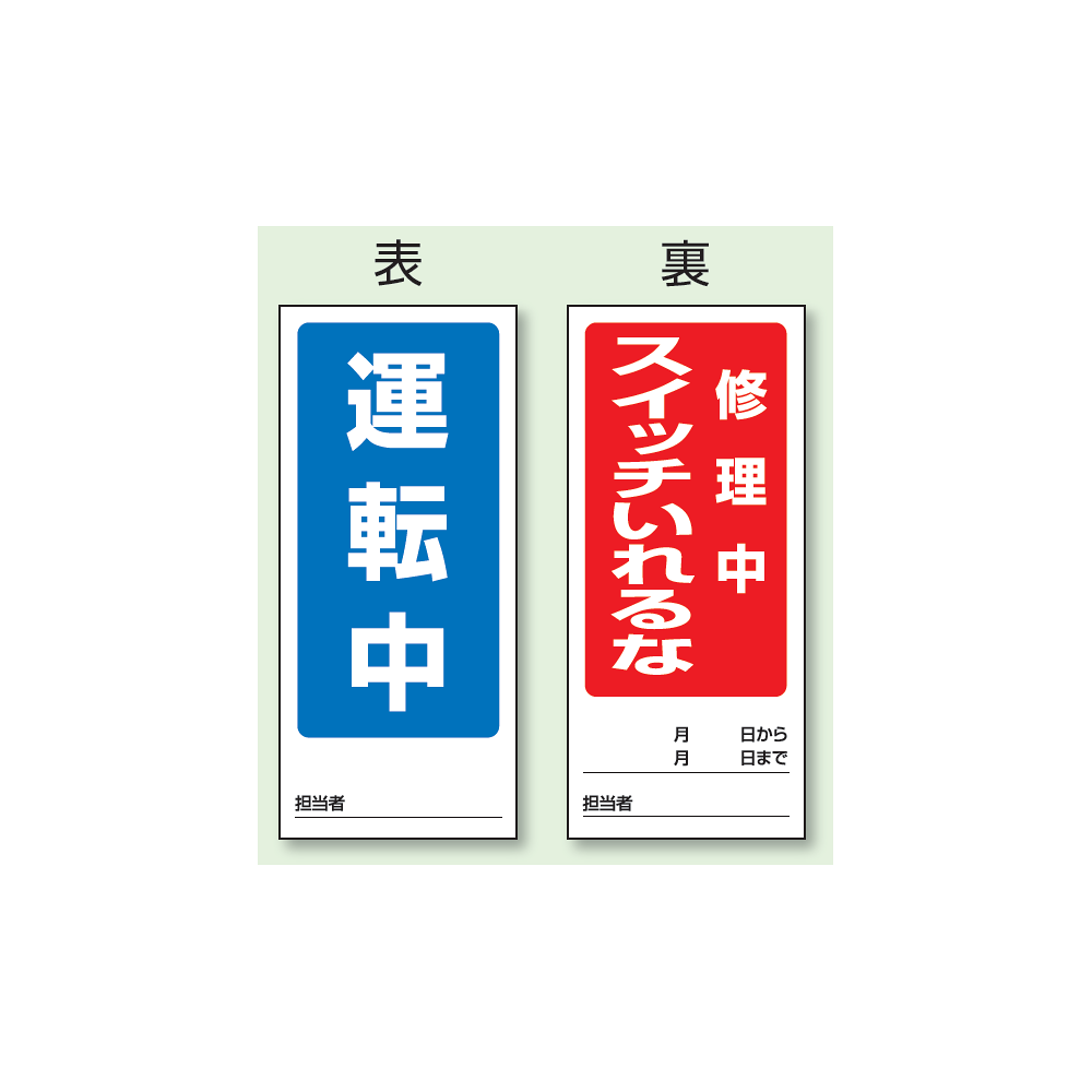 表示内容:(表) 修理中 操作禁止/ (裏) 点検中 操作禁止