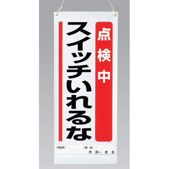 商品説明:吊り下げマグネット両用標識 点検中スイッチいれるな (805-90A)
