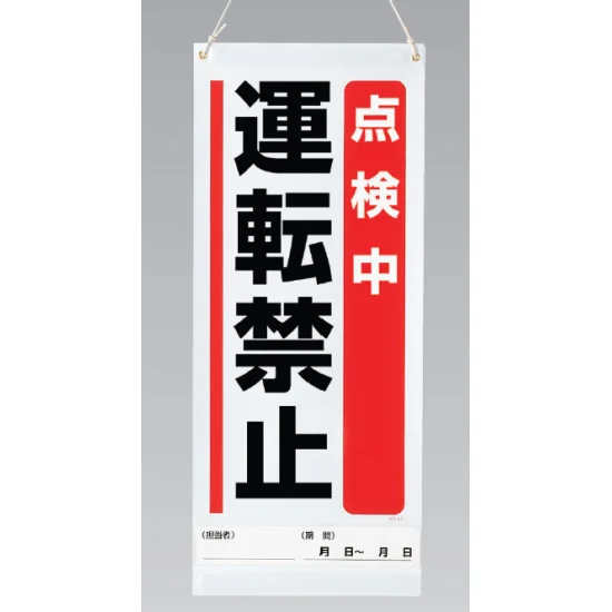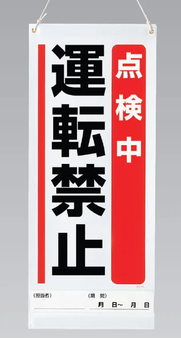 - 設備点検中に運転禁止を明確に周知したい場面に適した両用標識です。