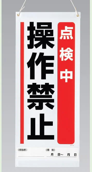 - 点検中の機械や設備に対して、操作禁止をしっかり表示したい場面に適した両用標識です。