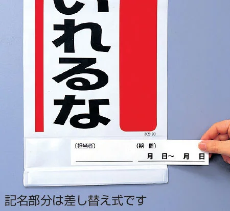 - ●記名部分は差し替え式ですので担当者、期間等の変更が簡単にできます。