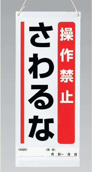 - 大きな文字で内容が伝わりやすく、点検中や危険箇所での接触防止、誤操作防止に役立ちます。