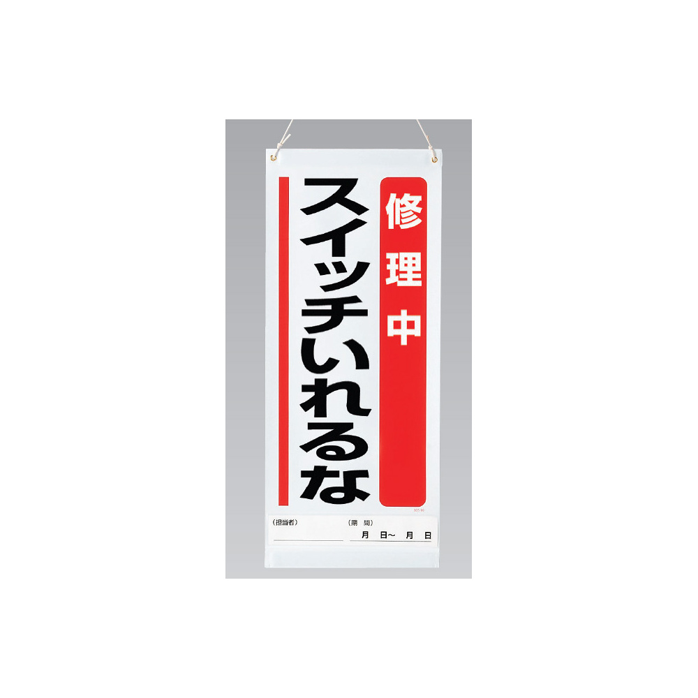 商品説明:吊り下げマグネット両用標識 修理中スイッチいれるな (805-95A)