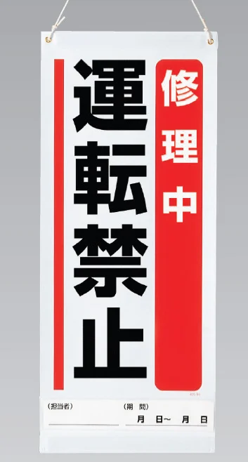 - 設備修理中に運転禁止を明確に表示したい場面に適した両用標識です。