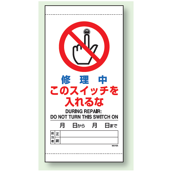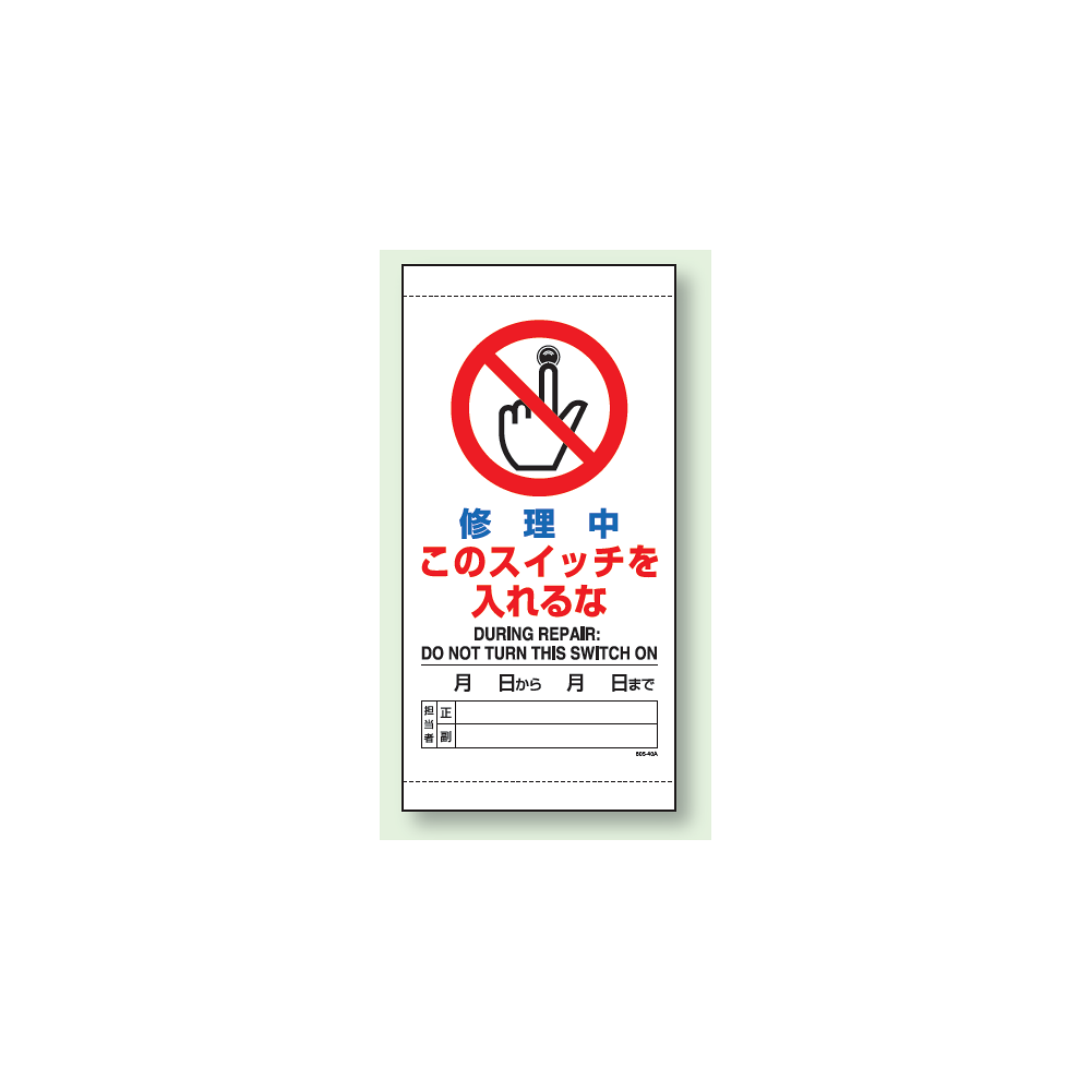 商品説明:修理中このスイッチを入れるな 上下部マグネット入ビニール標識 (805-40A)