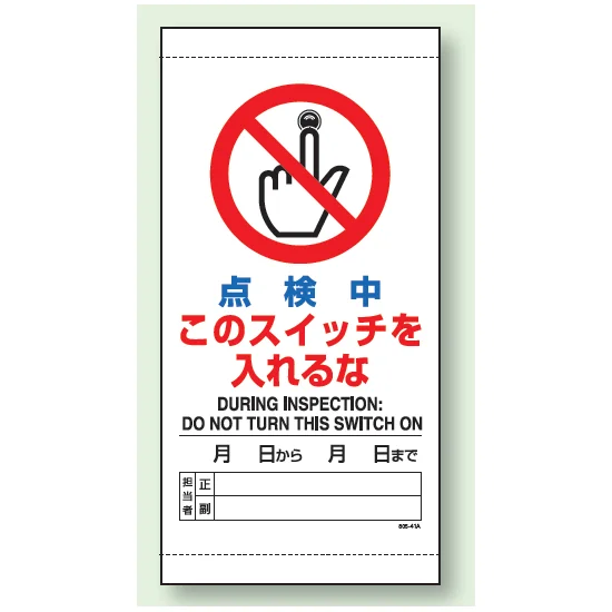 点検中のスイッチ投入禁止を、上下部マグネット付きでしっかり伝えられるビニール標識。