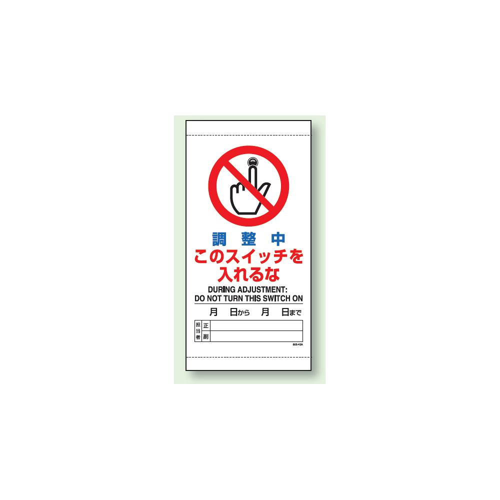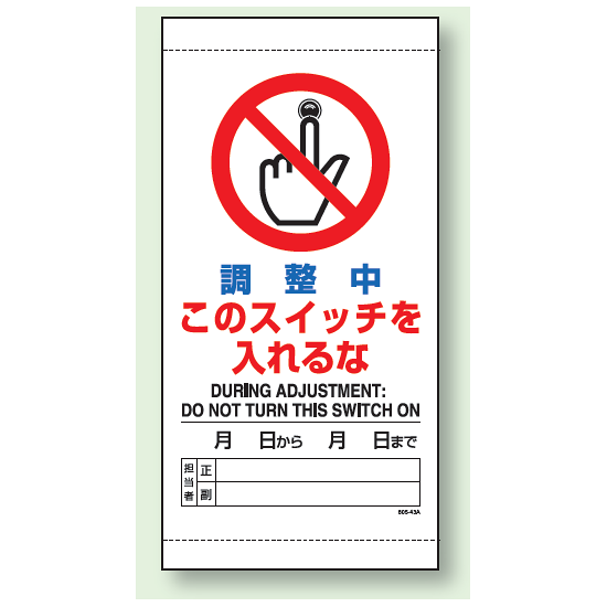 商品説明:調整中このスイッチを入れるな 上下部マグネット入ビニール標識 (805-43A)