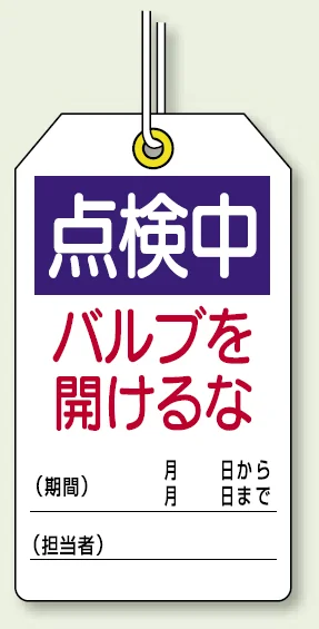 点検中バルブを開けるな ユニタッグ 10枚1組 (859-25) の商品詳細