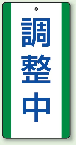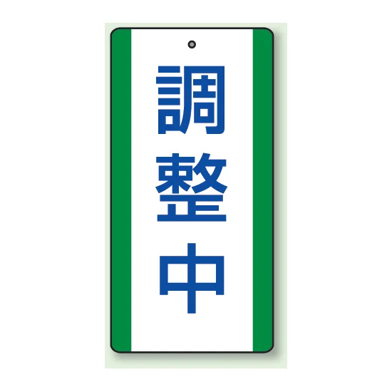 - 設備の調整作業中であることを周囲へ分かりやすく伝えたい場面に適した標識です。