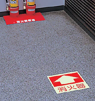 - 足元から消火器の方向を分かりやすく示したい場所に適した床面用表示です。