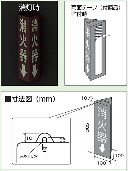 ■商品説明/三角柱標識(※消灯時光るのは、蓄光タイプのみ)