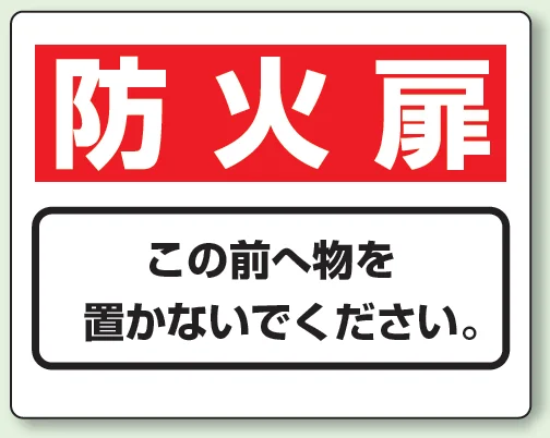 - 防火扉の前に物を置かないよう注意喚起したい場所に適した表示板です。