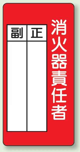 担当者名を記入して使える、消火器責任者用の記入式標識。