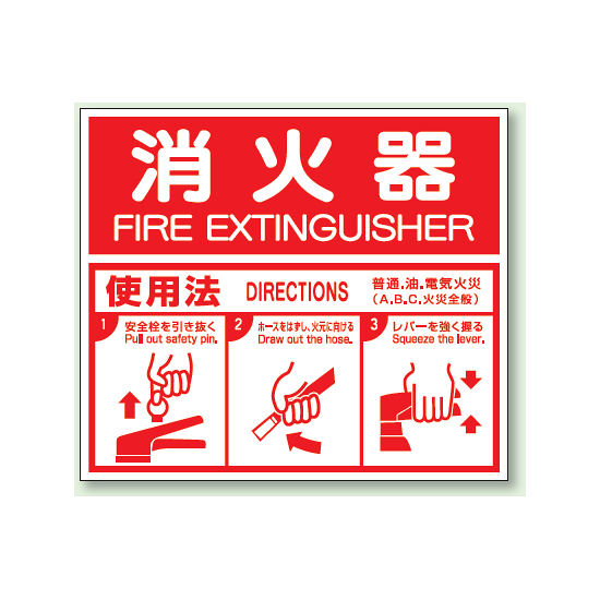 - 消火器 使用法 (ABC用) エコユニボード 215×250 (826-25)