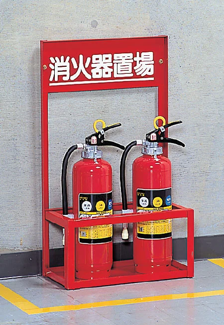 10型用の消火器置き場です。粉末4型・10型に対応しやすい、フレーム型の消火器置場。