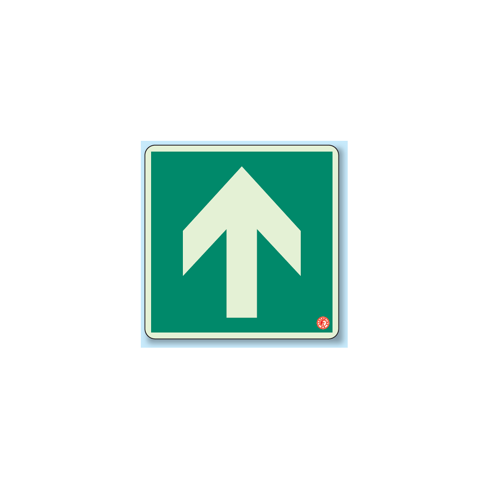 商品説明:矢印緑背景 避難口・通路誘導標識 (蓄光ステッカー) 300×300 (829-11A)