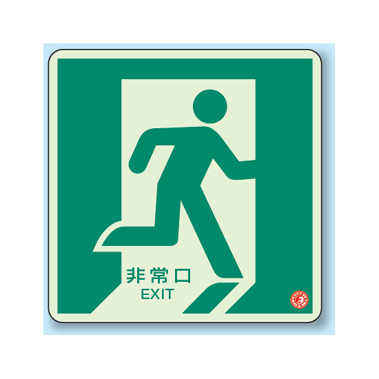 商品説明:非常口右向き1 避難口・通路誘導標識 (蓄光ステッカー) 300×300 (829-13A)
