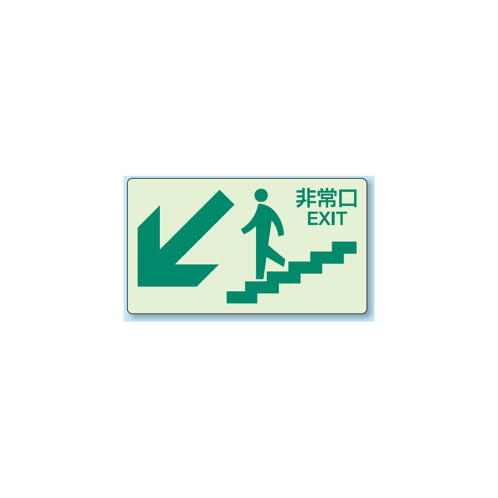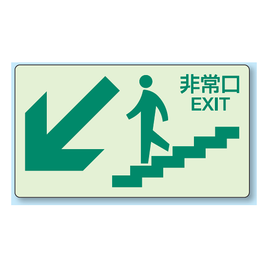 - 非常口矢印左下 階段壁面用蓄光ステッカー 130×230 (829-85)