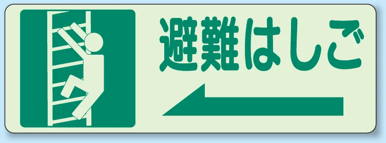 避難はしごの方向を側面から分かりやすく示せる、矢印付き蓄光ステッカー。