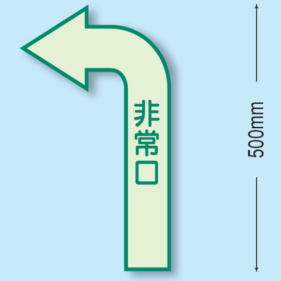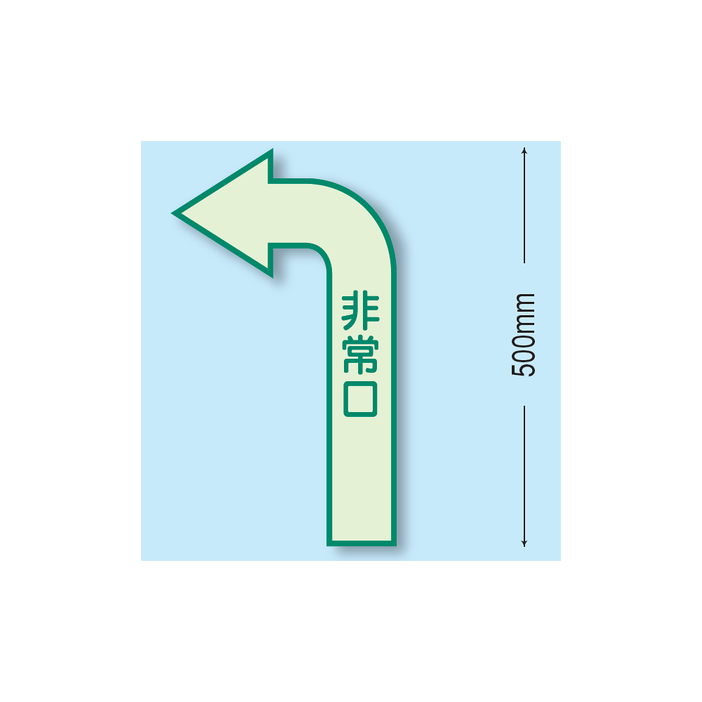 商品説明:非常口 左矢印 床面貼付蓄光ステッカー 500 ×300 (829-391)