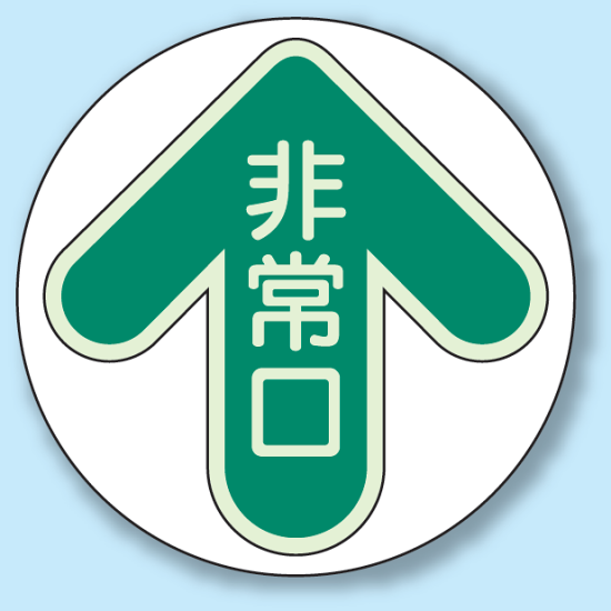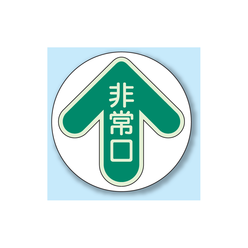 商品説明:非常口 矢印色緑 床面貼付蓄光ステッカー 280 × 285 (829-30)