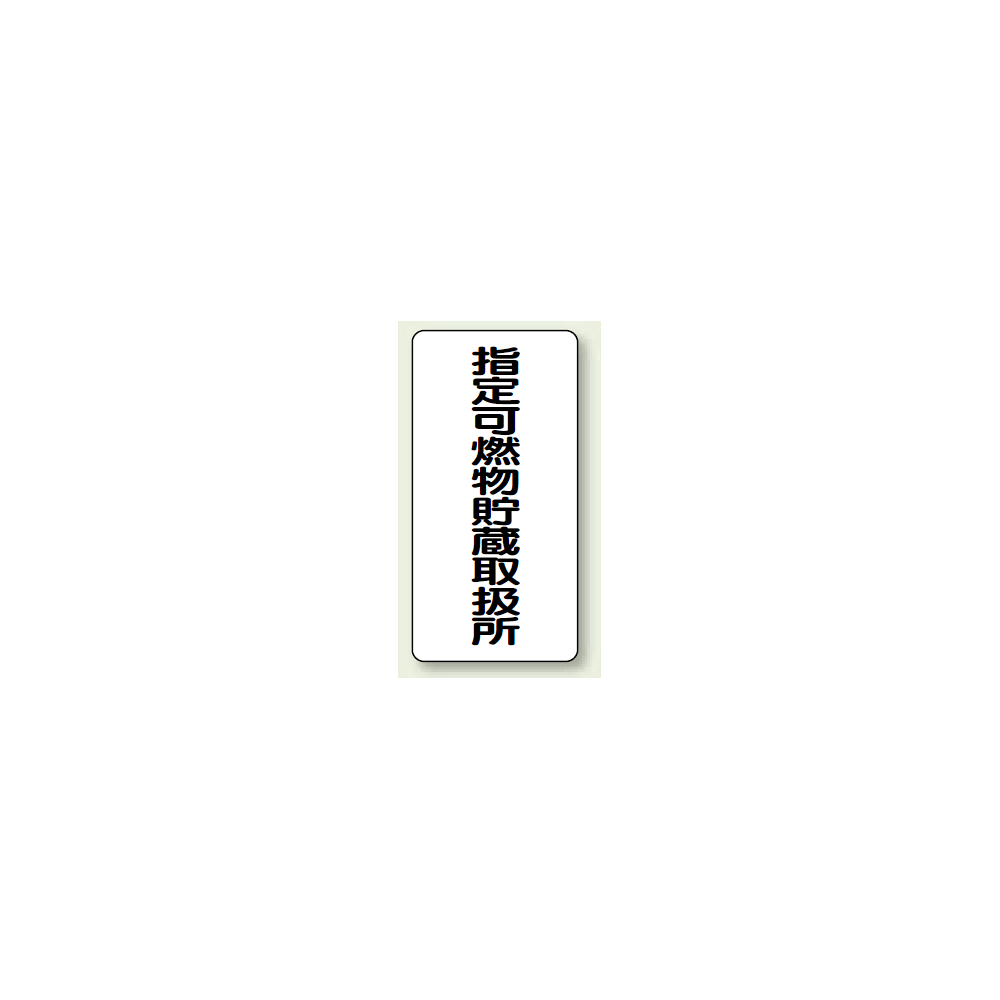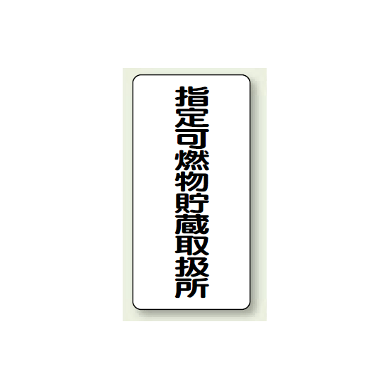 商品説明:縦型標識 指定可燃物貯蔵取扱所 鉄板 600×300 (828-32)