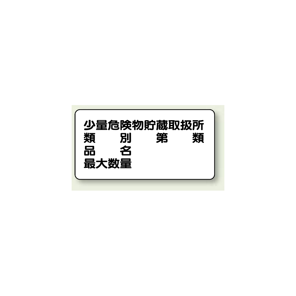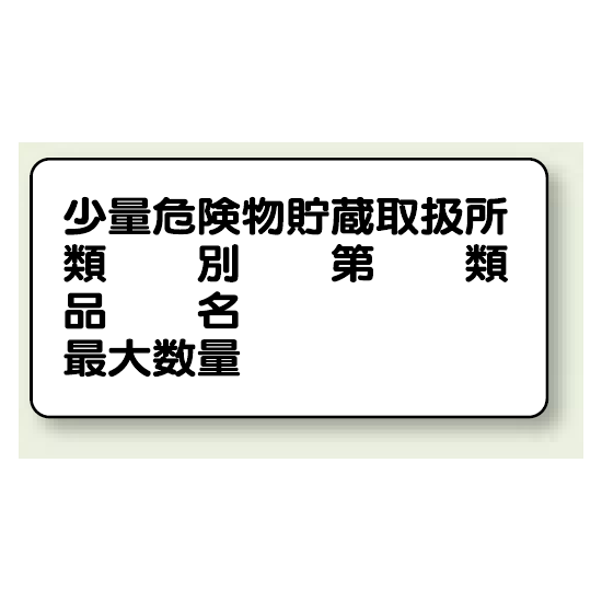 商品説明:横型標識 少量危険物貯蔵取扱所 (名入れ部有) 鉄板 300×600 (828-53)