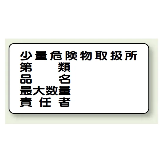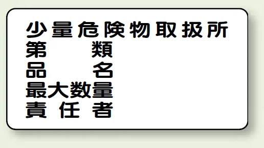- 少量危険物取扱所/第○類/品名/最大数量/責任者