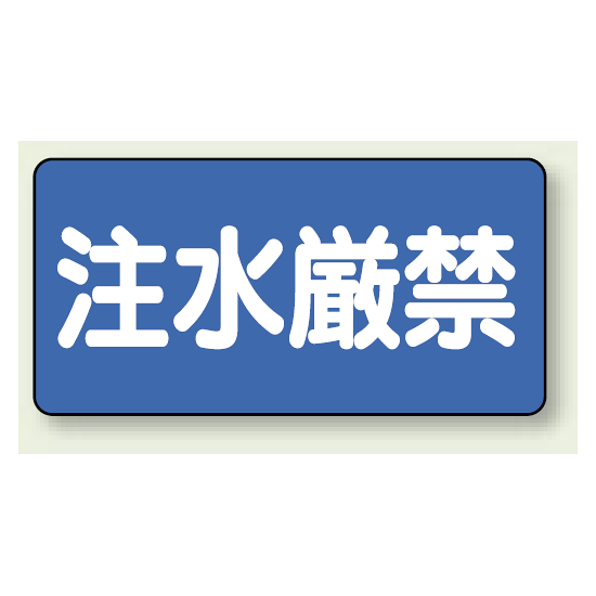 鉄板タイプの横型表示プレート 表示内容は「注水厳禁」です。