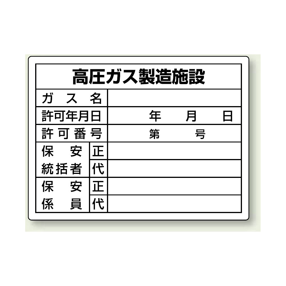 商品説明:高圧ガス製造施設 ボード 450×600 (827-55)