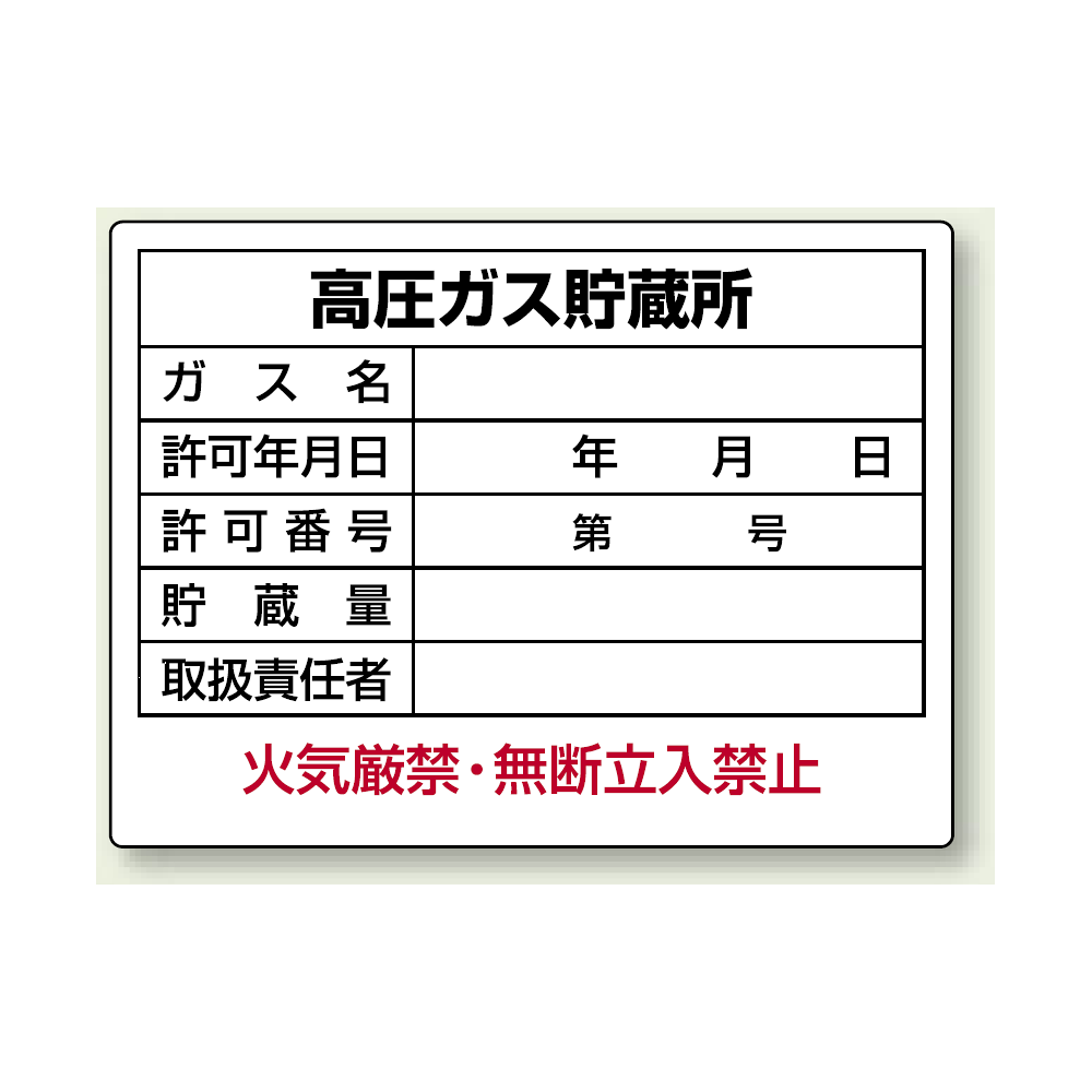商品説明:高圧ガス貯蔵所 ボード 450×600 (827-56)