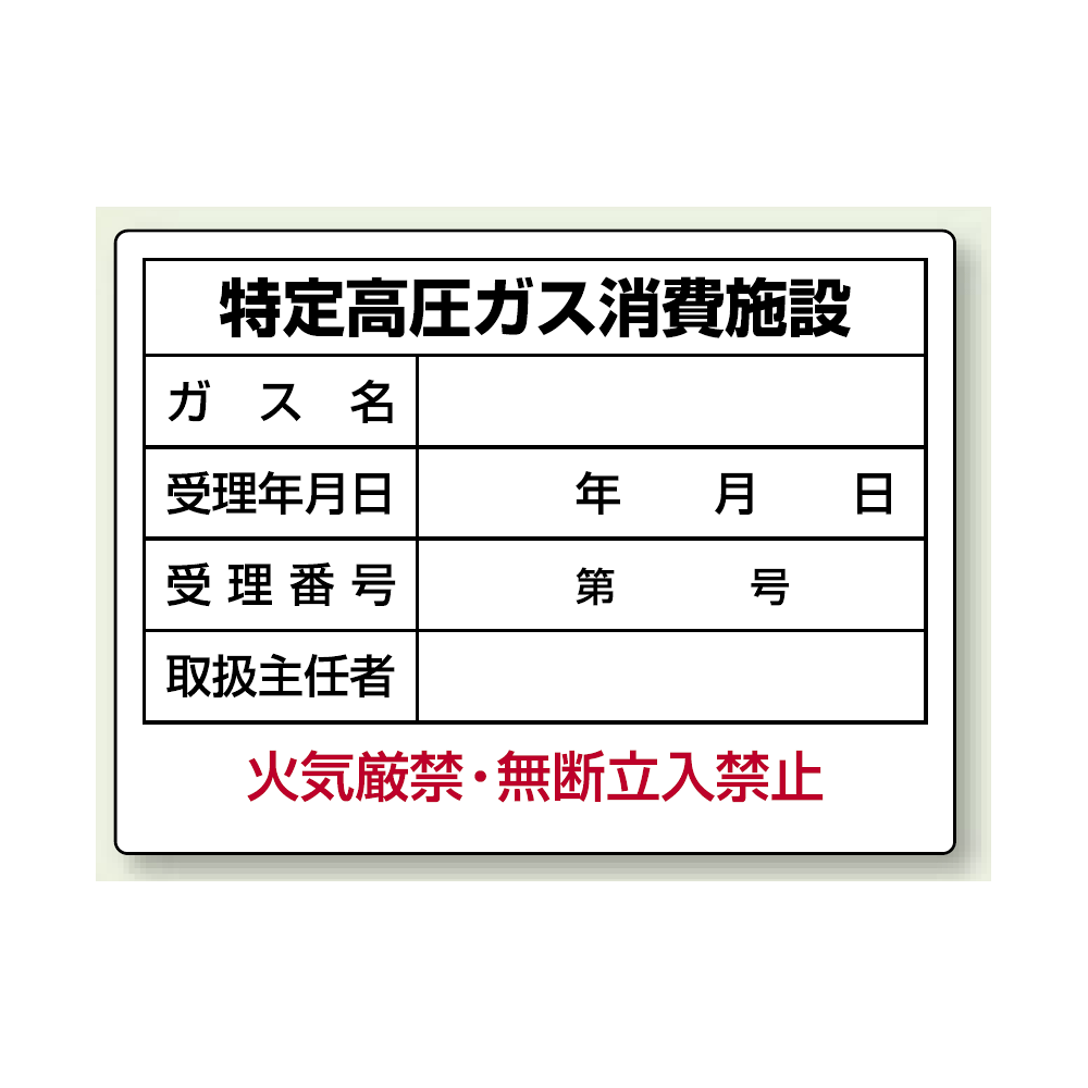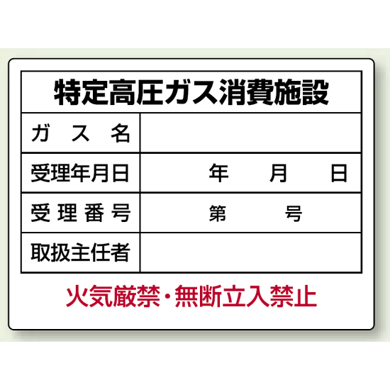 商品説明:特定高圧ガス消費施設 ボード 450×600 (827-57)