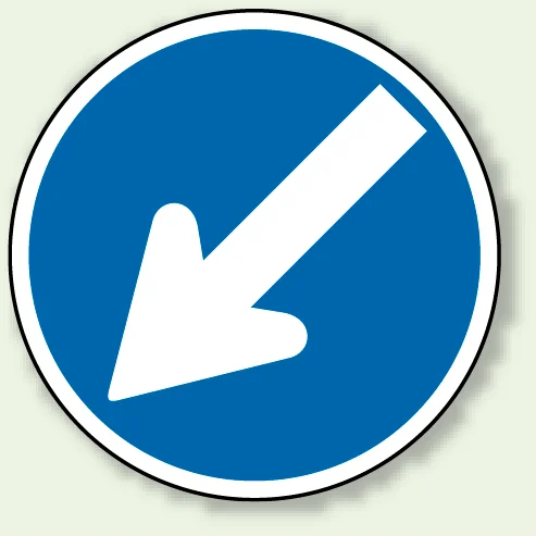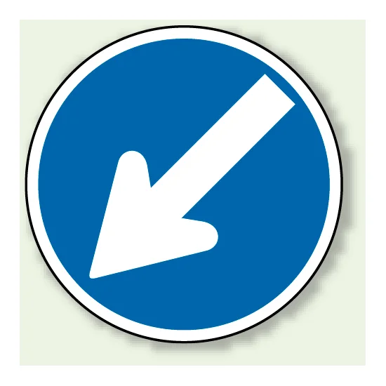 片面表示左斜め下方向への進行指定を示せる、構内用の丸型道路標識です。