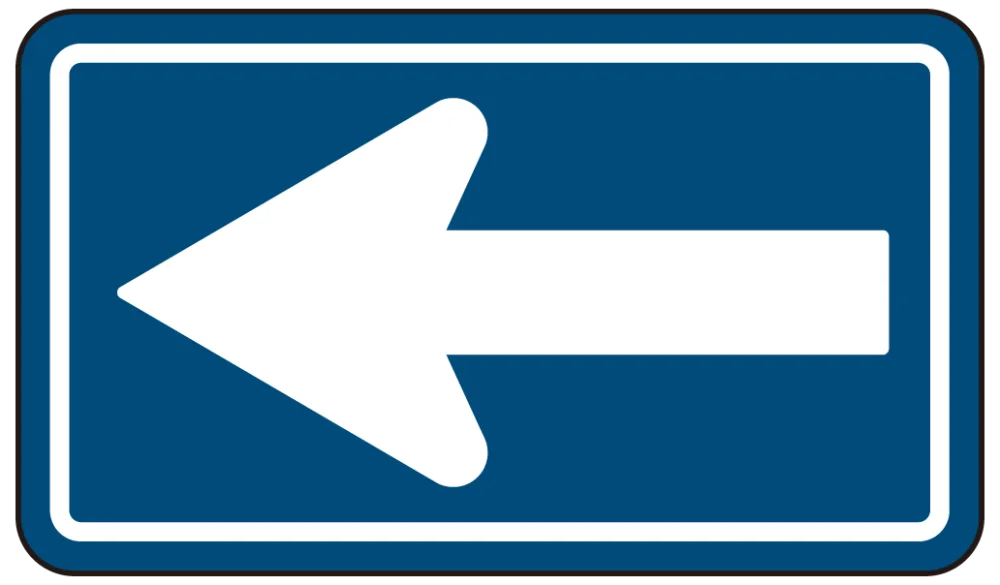 片面表示左方向の一方通行を分かりやすく案内できる横型標識です。